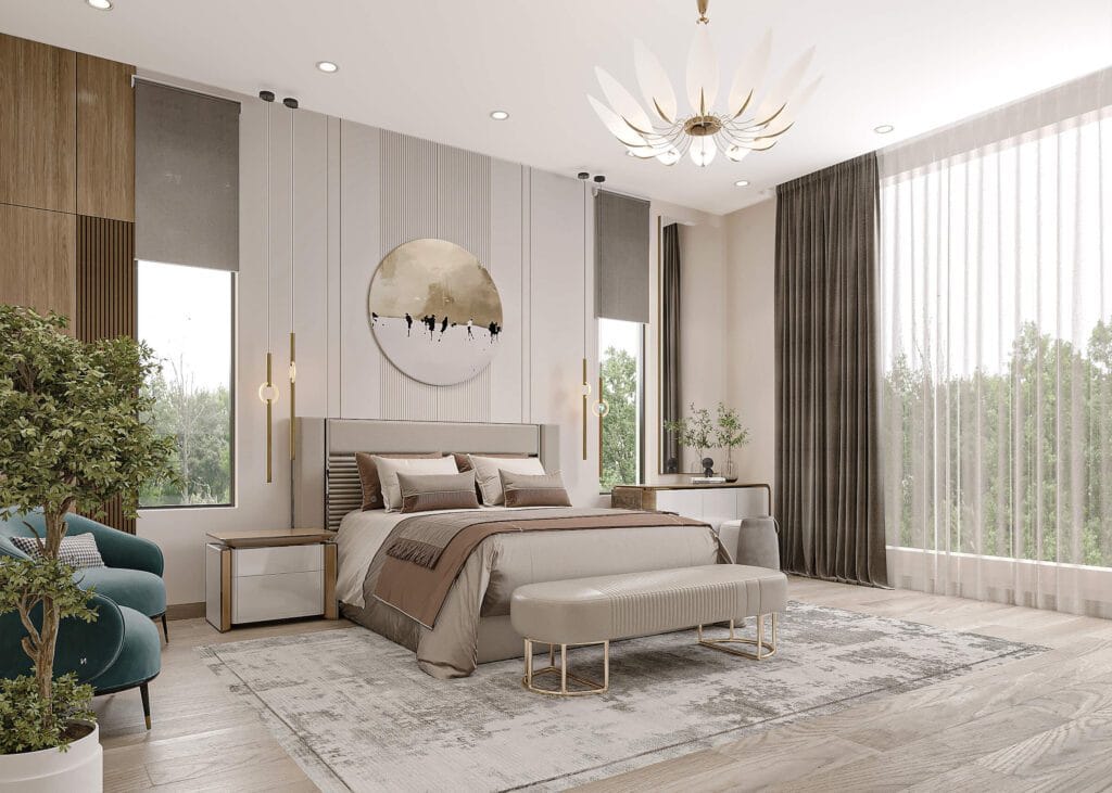 - الألوان الناعمة مثل البيج والأبيض توفر جوًا مريحًا ومهدئًا، وتساعد في تعزيز النوم العميق.
