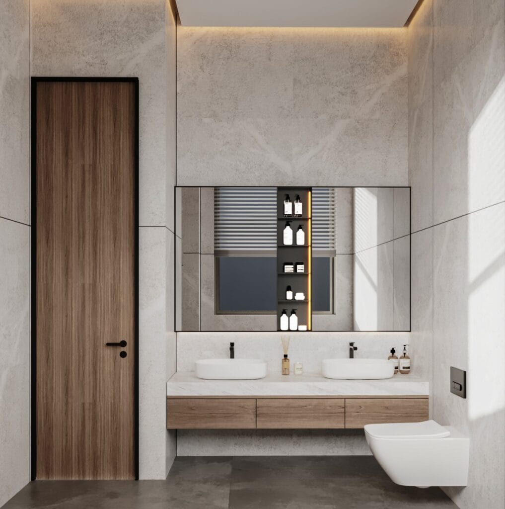 - يُفضل تجنب استخدام الألوان الداكنة في الحمامات الصغيرة، حيث قد تجعلها تبدو أكثر ضيقًا ومظلمة.