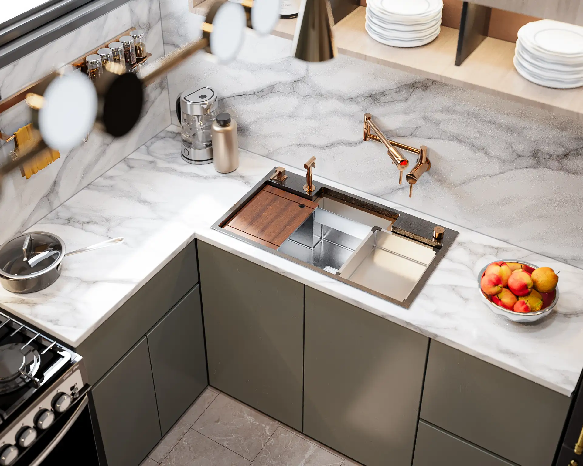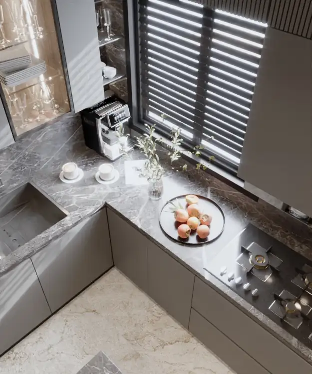 - لقطات 3D احترافية للمطبخ من جميع الزوايا