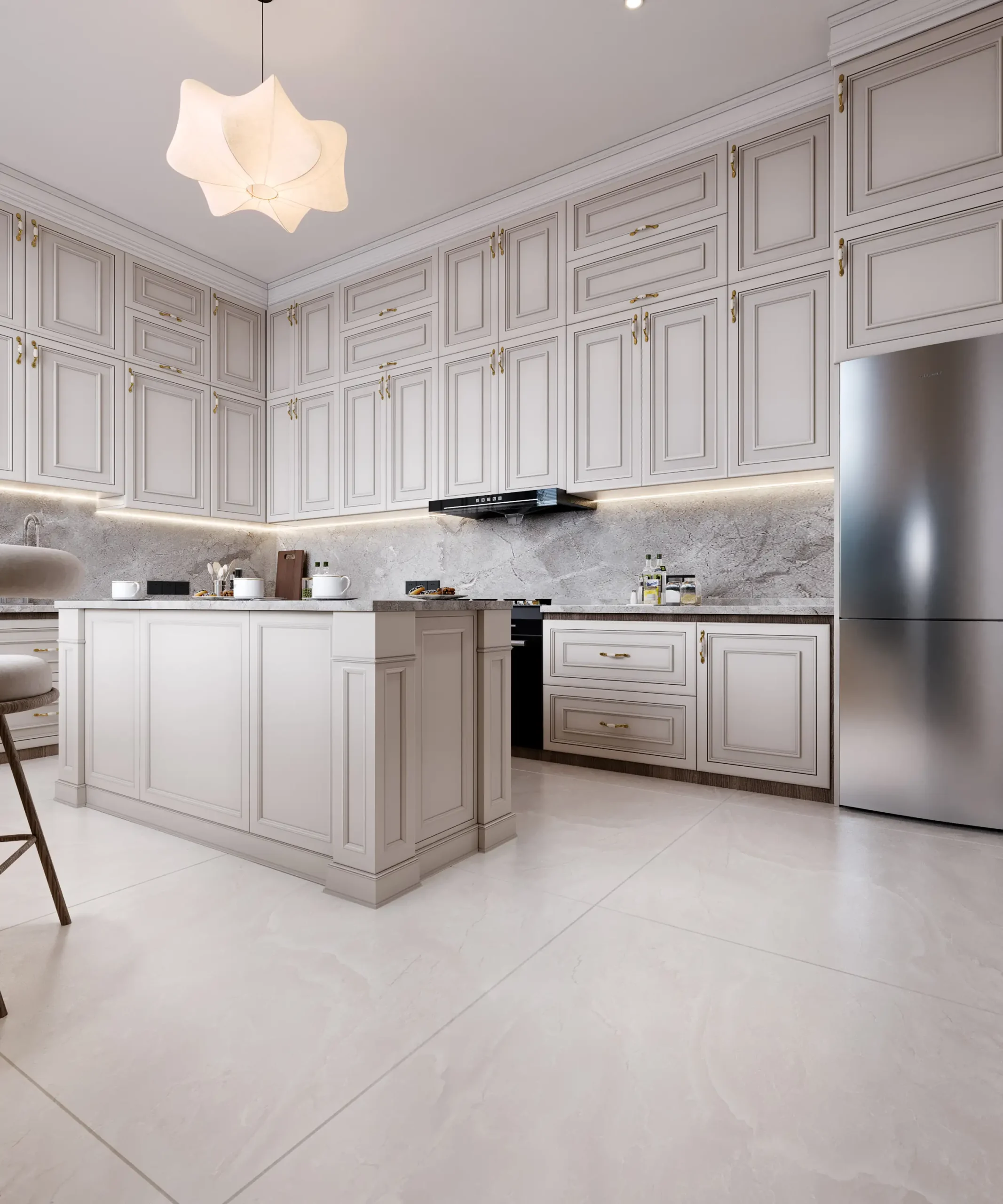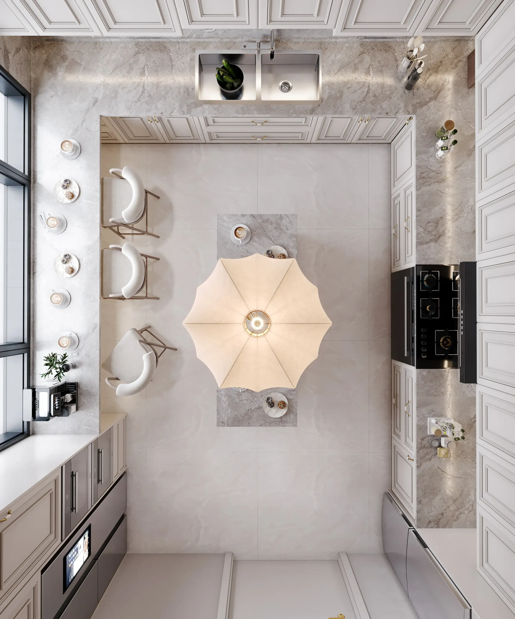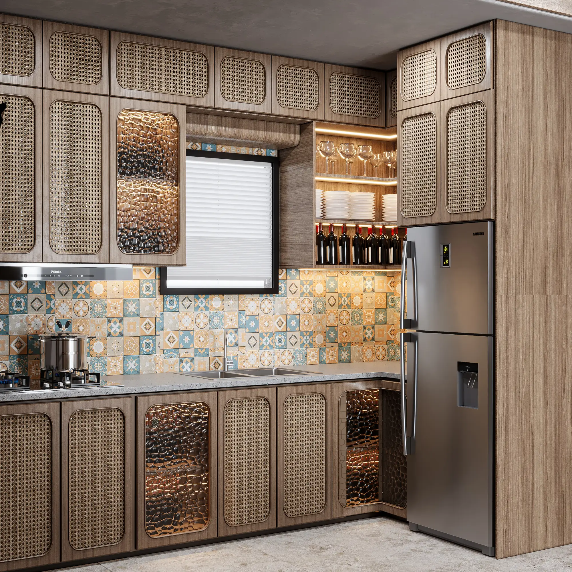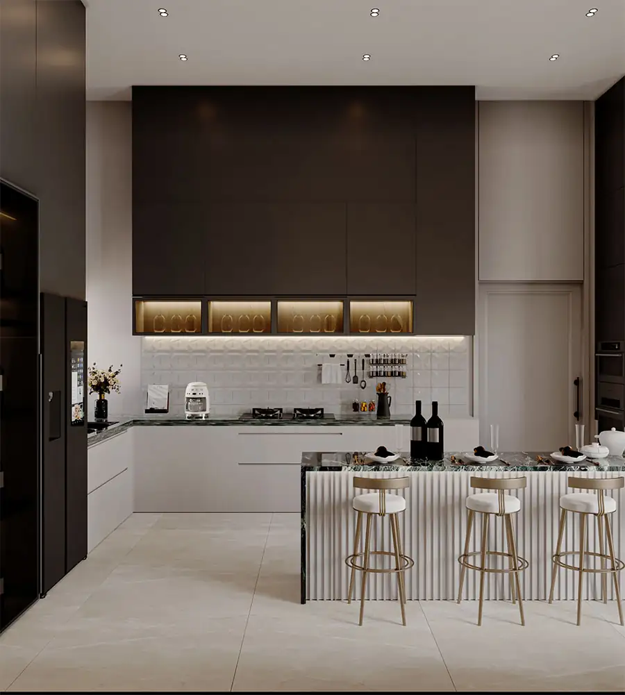 ✔ تصميم 3D واقعي شامل لجميع تفاصيل المطبخ