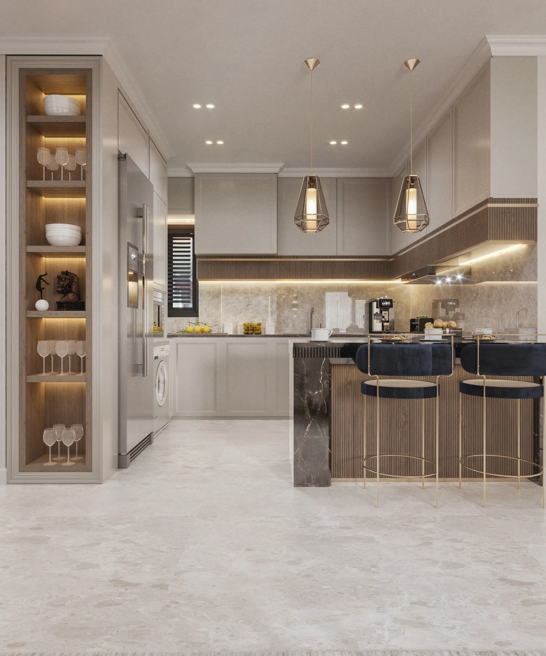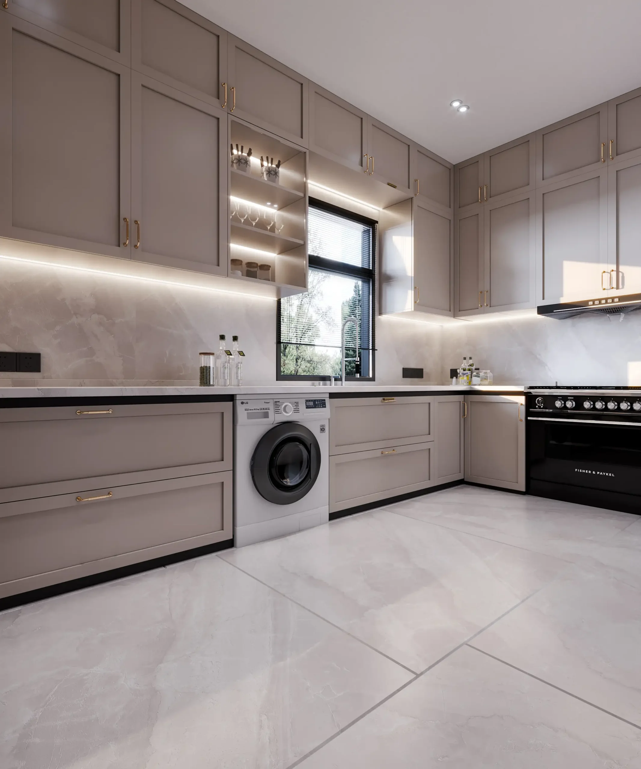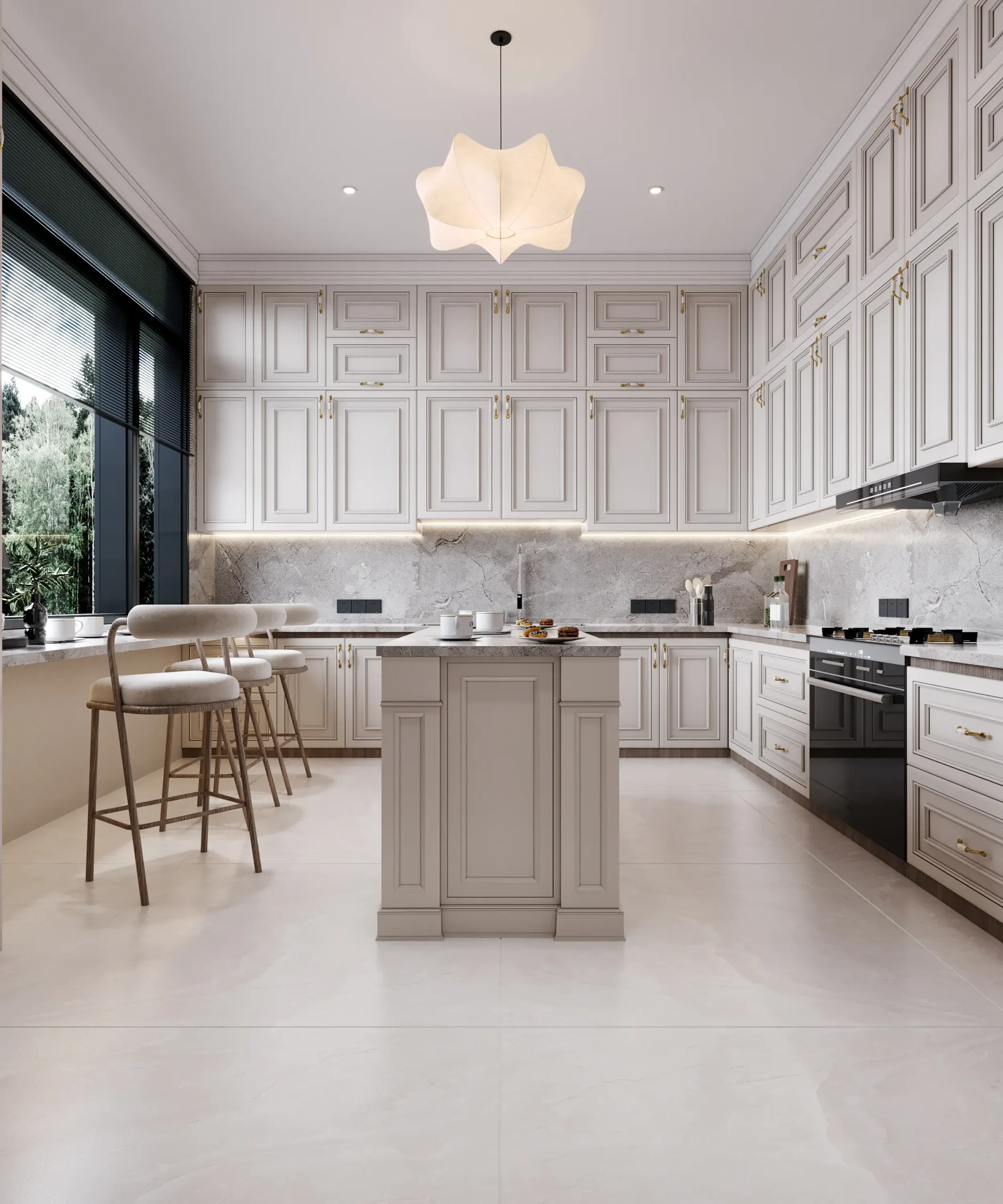 ✔ تصميم 3D واقعي شامل لجميع تفاصيل المطبخ