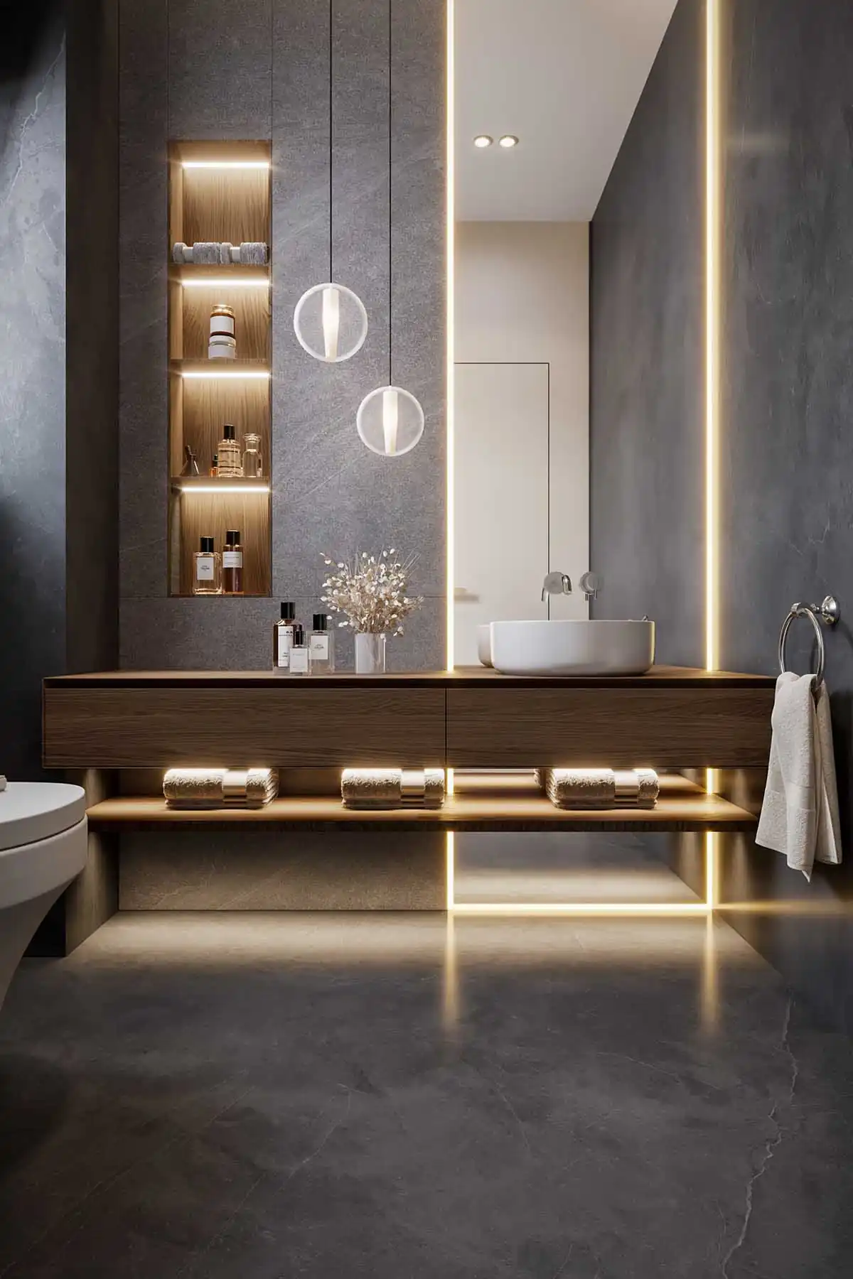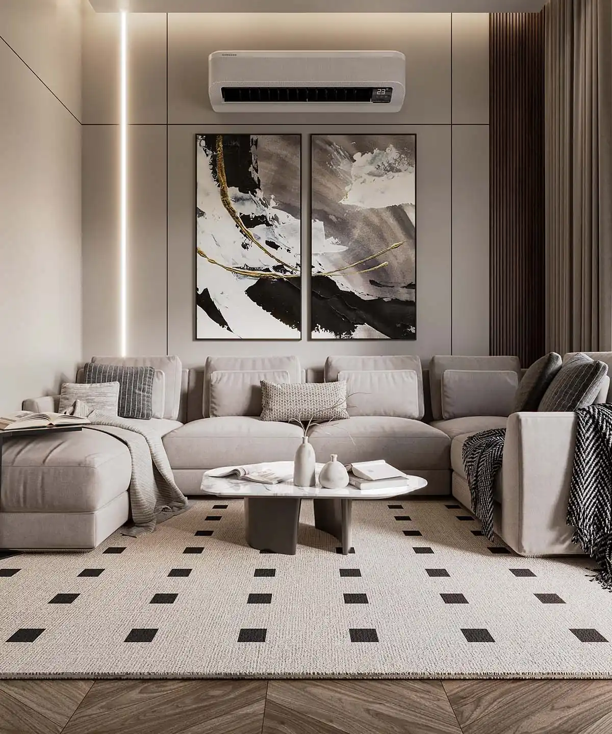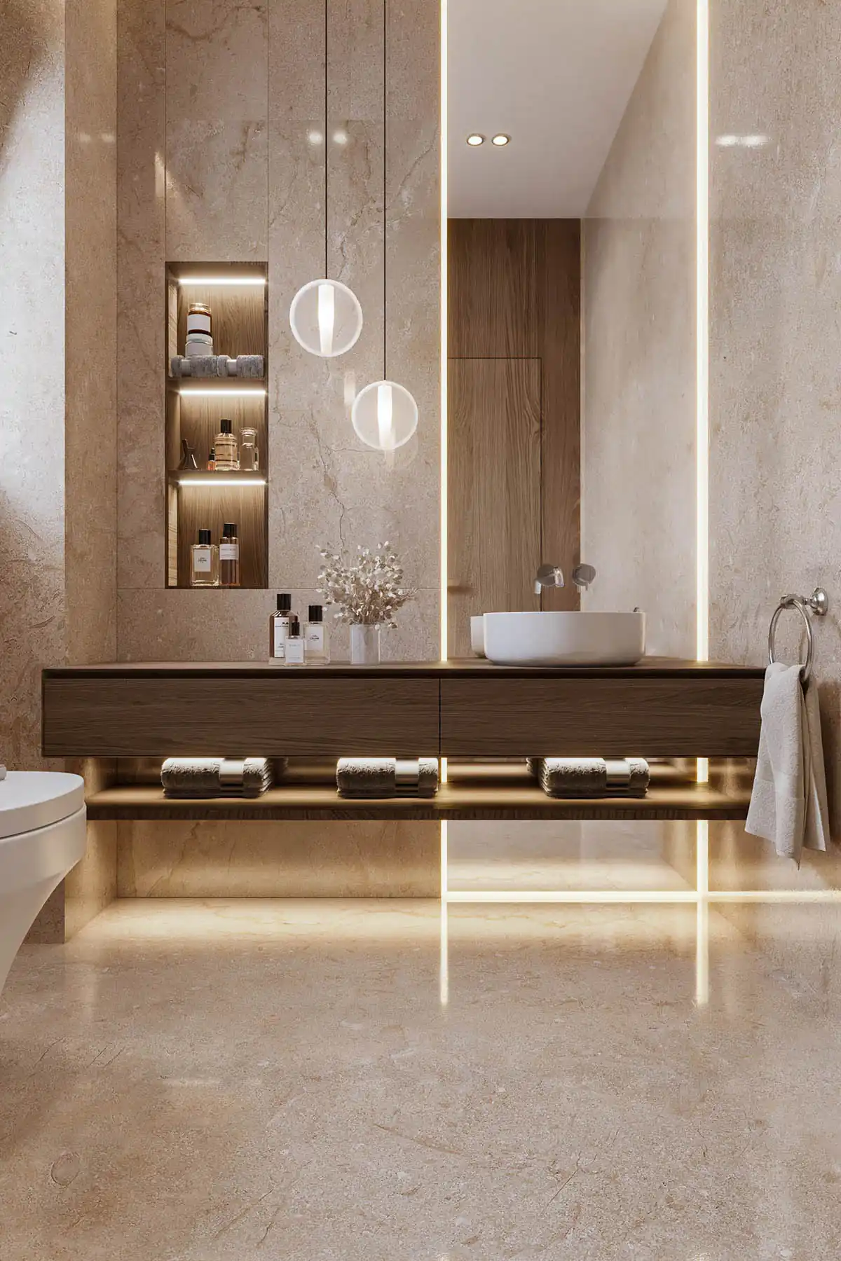 النتيجة النهائية هي تصميم داخلي يجسد الفخامة العصرية، ويعكس شخصية وذوق العميل بوضوح، مع مراعاة أعلى معايير الراحة والعملية. هذا المشروع في بالم هيلز ليس مجرد مساحة للسكن، بل تجربة متكاملة تعكس أسلوب حياة راقي، حيث يلتقي الجمال بالوظيفة في تناغم مثالي.