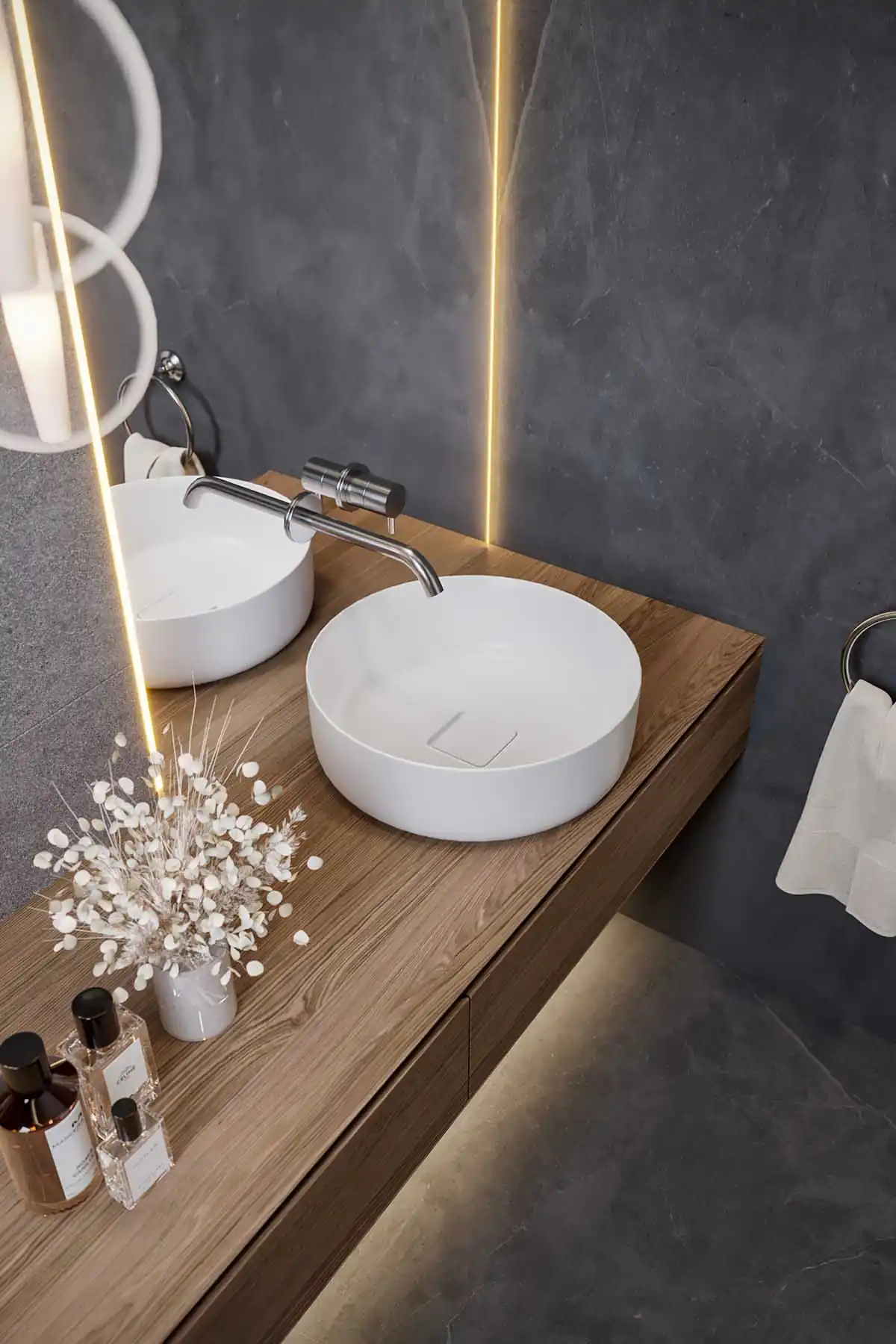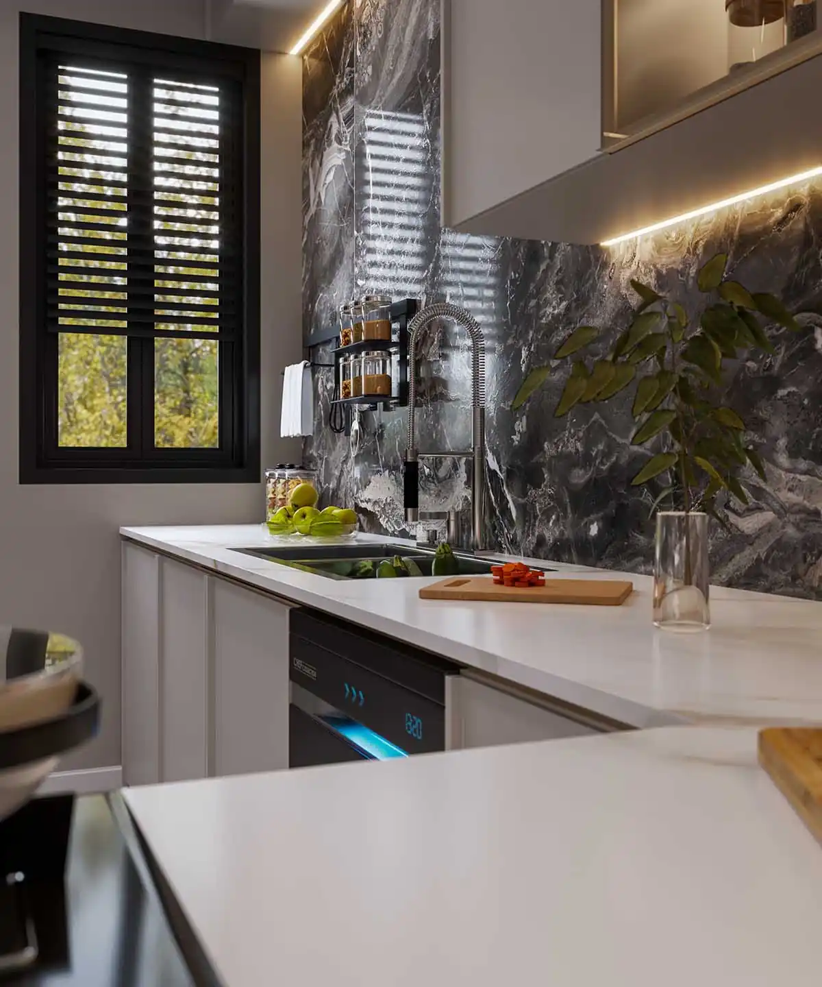 واحدة من اللمسات المميزة في المشروع هي استخدام الضوء الخافق (Dimmable Lighting)، والذي يمنح المستخدم حرية التحكم في شدة الإضاءة وفقًا للمزاج أو طبيعة النشاط، سواء كان الاسترخاء في المساء أو استقبال الضيوف في أجواء مبهجة.