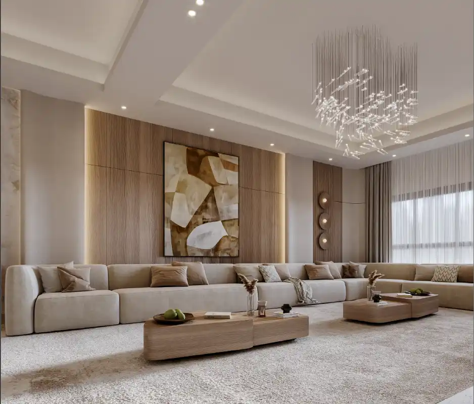 تعكس هذه التدرجات الأجواء العائلية الدافئة، حيث تتصدرها الألوان الكريمية مثل فانيلا لاتيه بدرجاته الناعمة التي تمنح المكان طابعًا هادئًا ومريحًا، مثالية لغرف المعيشة والصالات العائلية الكبيرة.